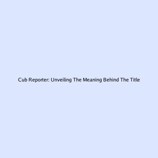 Cub Reporter: Unveiling the Meaning Behind the Title